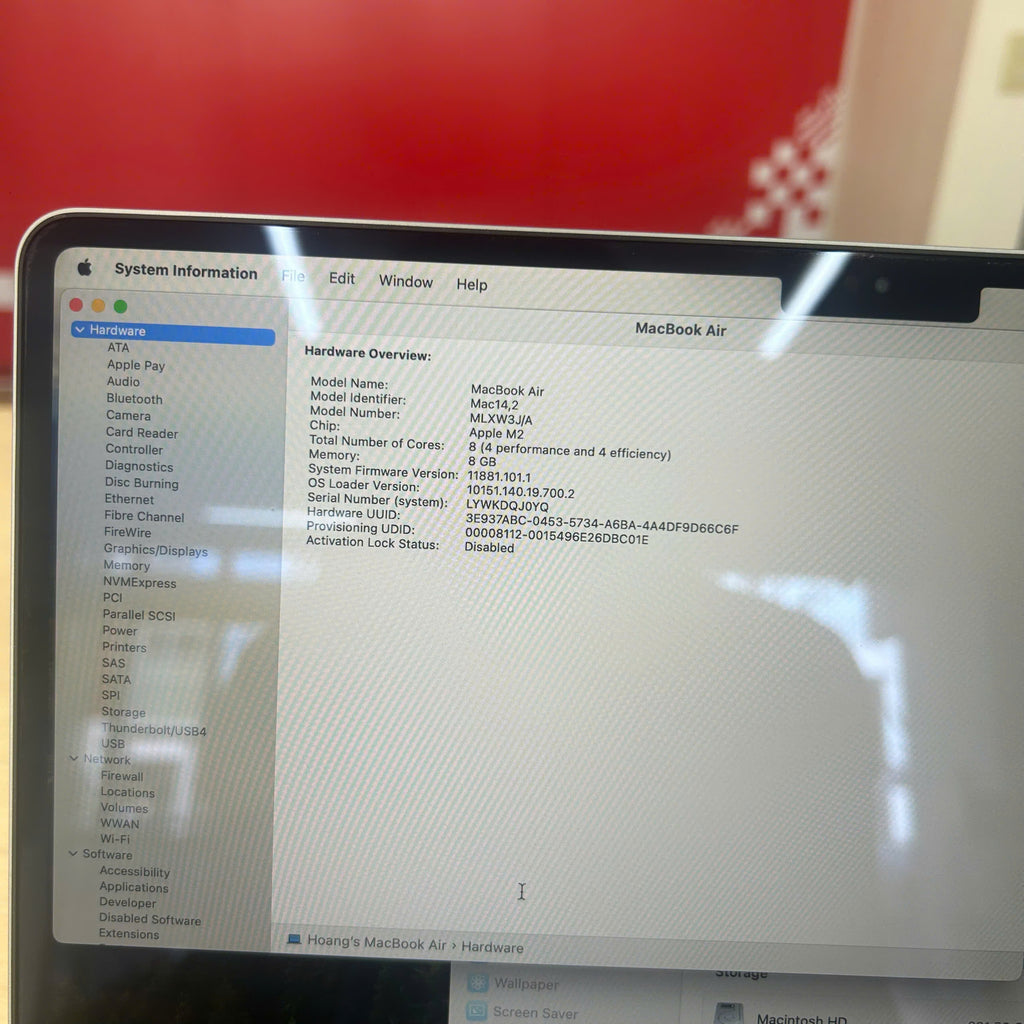 Macbook Air 2022 13.6လက်မ မီးခိုးရောင် M2/ RAM 8GB/ SSD 256GB ဘက်ထရီ 94% BPTA 115 ကြိမ် အားသွင်း