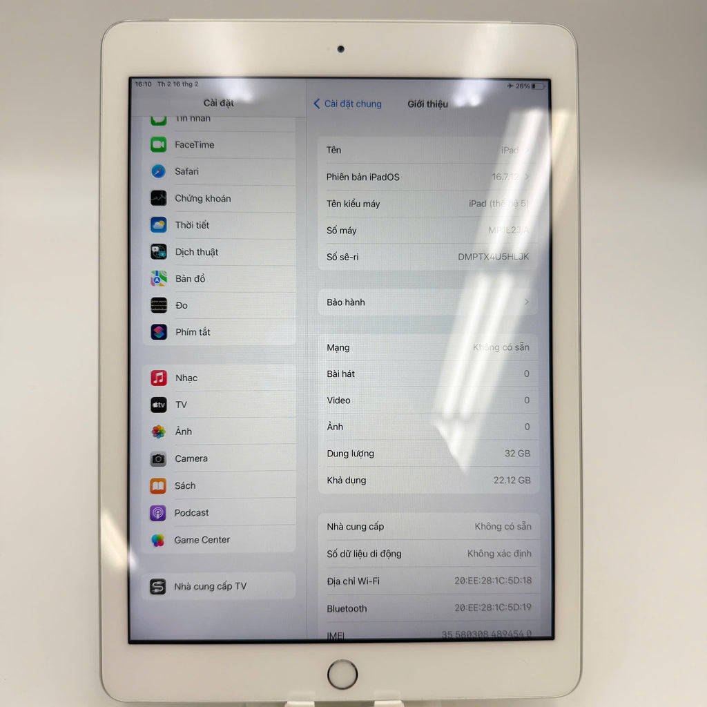 iPad Gen 5 2017 9.7in 32GB ငွေရောင် 4G + Wifi 98% ဘက်ထရီ 93% AU