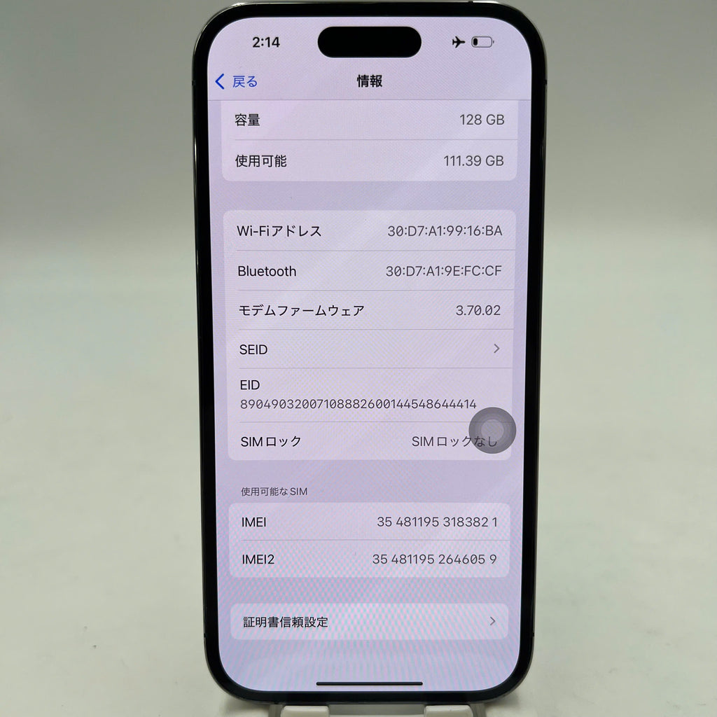 iPhone 14 Pro 128GB ခရမ်းရောင် 98% ဘက္ထရီ 88% International AU (AU sim မသုံးပါ - 0.5x အစက်အပြောက်များ၊ အစွန်းများ) - HH3821