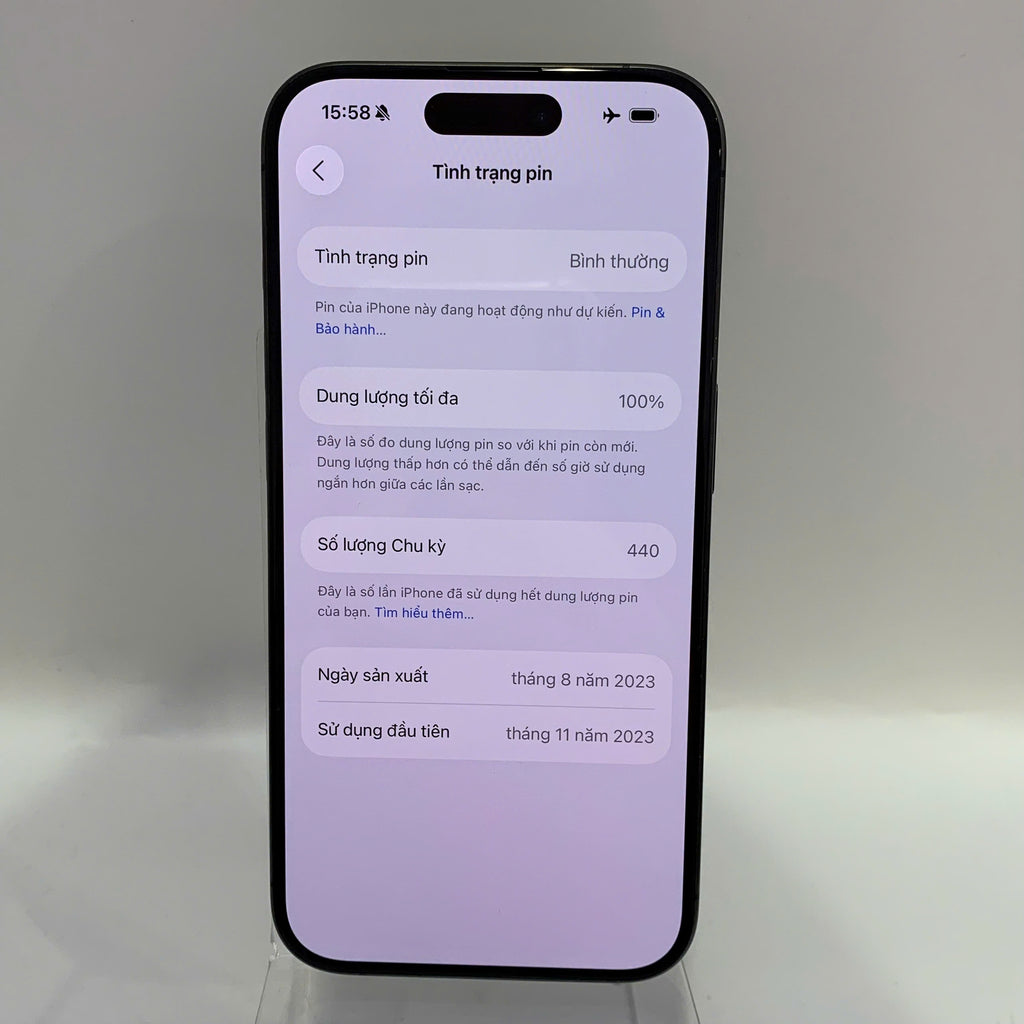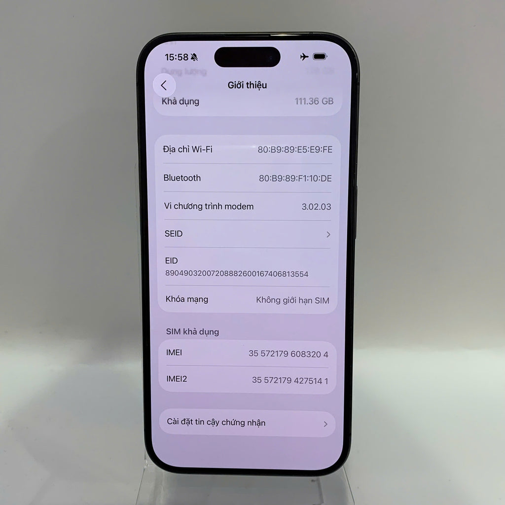iPhone 15 Pro 128GB အနက်ရောင် 98% ဘက္ထရီ 100% International Apple (နောက်ကျောအညိုရောင်၊ ခြစ်ရာအစွန်းများ၊ DTP) - HH3204