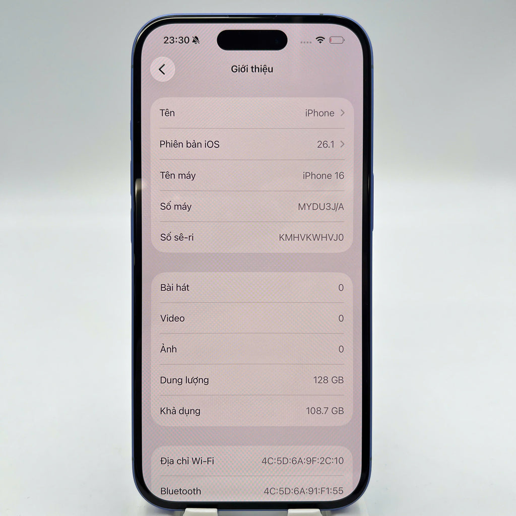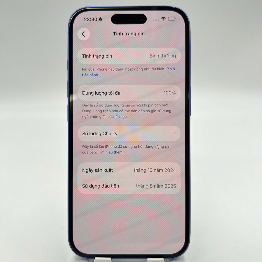 iPhone 16 128GB အပြာရောင် 99% ဘက္ထရီ 96% International SB မှ SB (No SB sim (စကရင် ခြစ်ရာ၊ အစွန်းများနှင့် ကင်မရာ) - HH2862