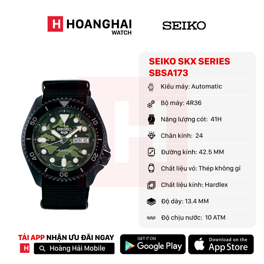 Seiko 5 Sport SKX စီးရီး SBSA173 စက်ပိုင်းဆိုင်ရာနာရီ - မှာယူမှုများလက်ခံပါသည်