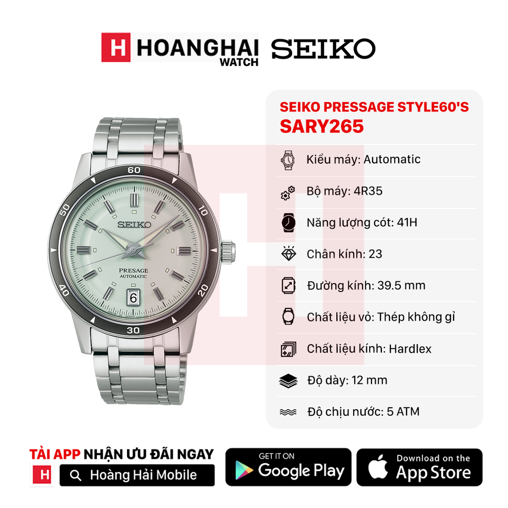 Đồng hồ cơ Seiko Pressage Style60's SARY265 - Nhận Order