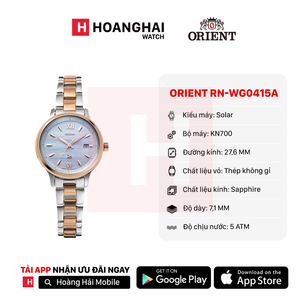 Orient iO Natural & Plain RN-WG0415A အမျိုးသမီး နေရောင်ခြည်စွမ်းအင်သုံး နာရီ - မှာယူမှုများ လက်ခံပါသည်